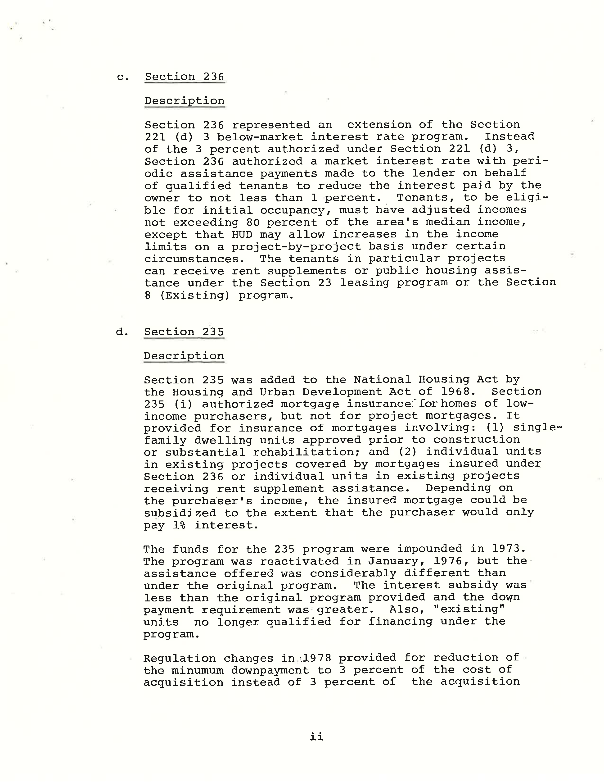 The funds for the 235 program were impounded in 1973. The program was reactivated in January, 1976, but the- assistance offered was considerably different than under the original program. The interest subsidy was less than the original program provided and the down payment requirement was greater. Also, "existing" units no longer qualified for financing under the program.